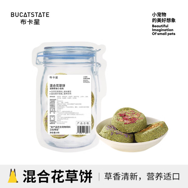 布卡星(BUCATSTATE)兔子零食提摩西草苜蓿草饼兔粮荷兰猪龙猫兔兔磨牙用品 混合花果草饼