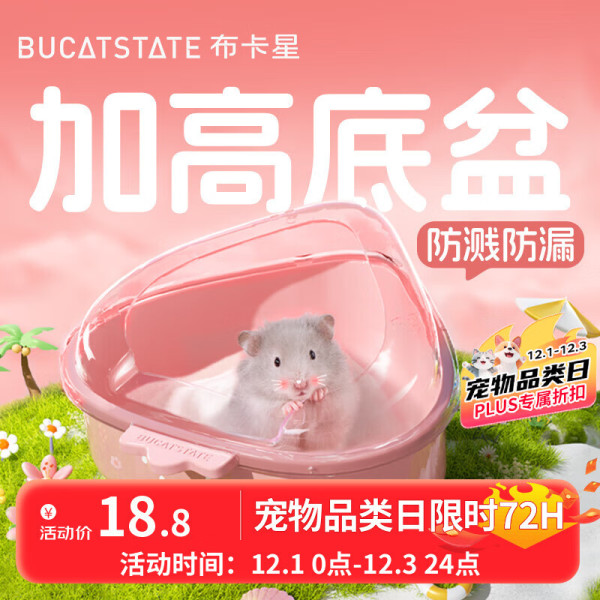 布卡星 BUCATSTATE 草莓浴室粉色仓鼠透明洗澡盆金丝熊厕所两用浴沙尿砂盆造景用品