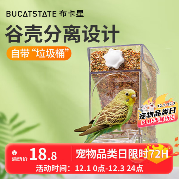 布卡星 BUCATSTATE 鹦鹉自动喂食器透明色防撒防溅鸟食盆下料器虎皮牡丹用品
