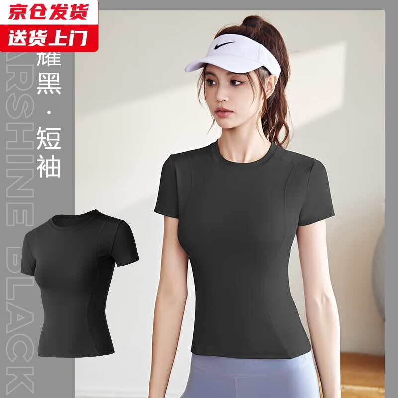 槿城槿城薄款运动紧身短袖女瑜伽服上衣女跑步健身内搭t恤DX40 星耀黑 S