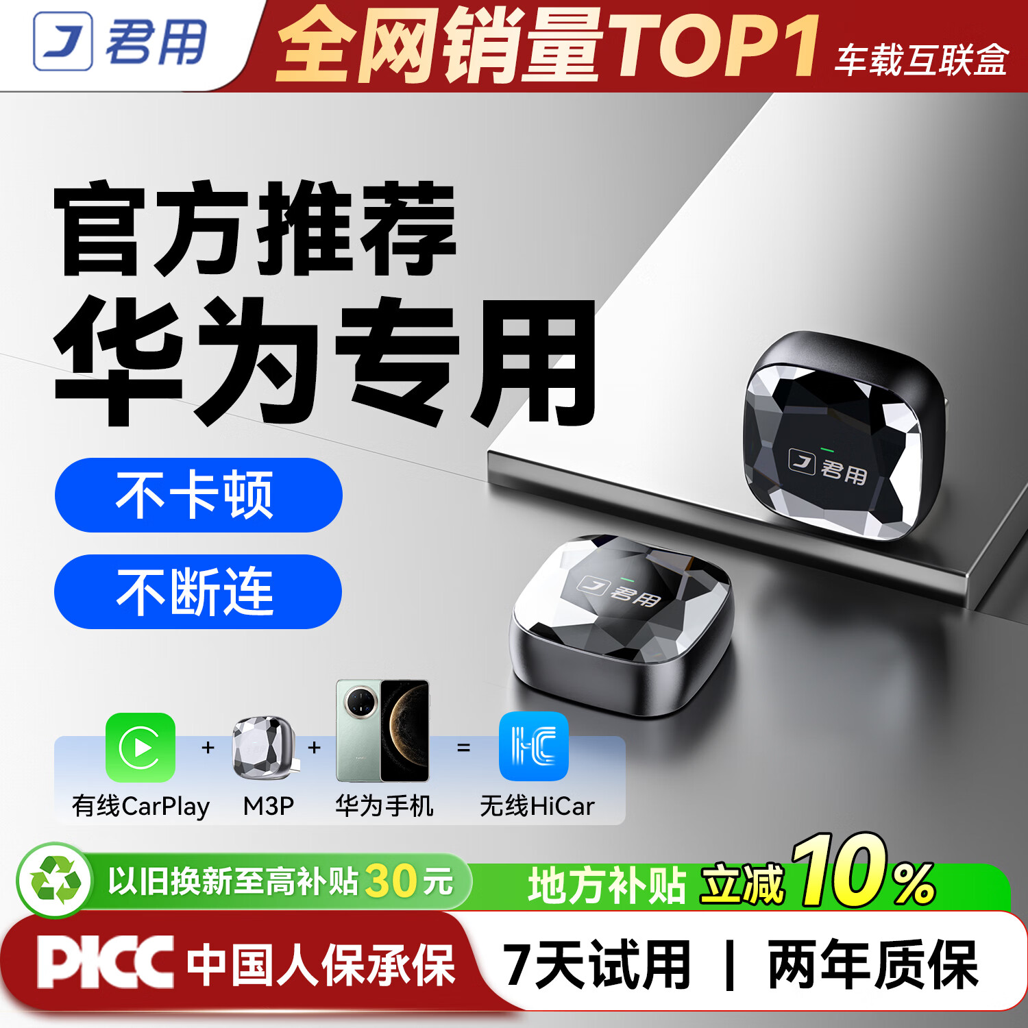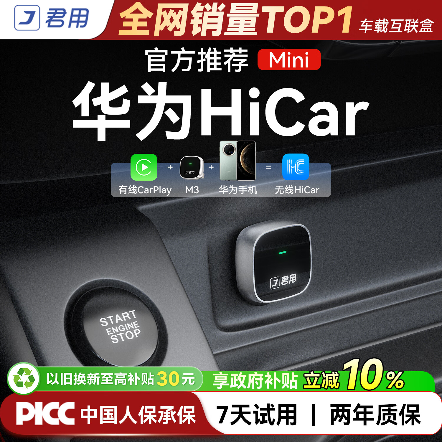 君用华为HiCar适用奥迪大众奔驰沃尔沃车载互联盒子 M3【USB迷你款】