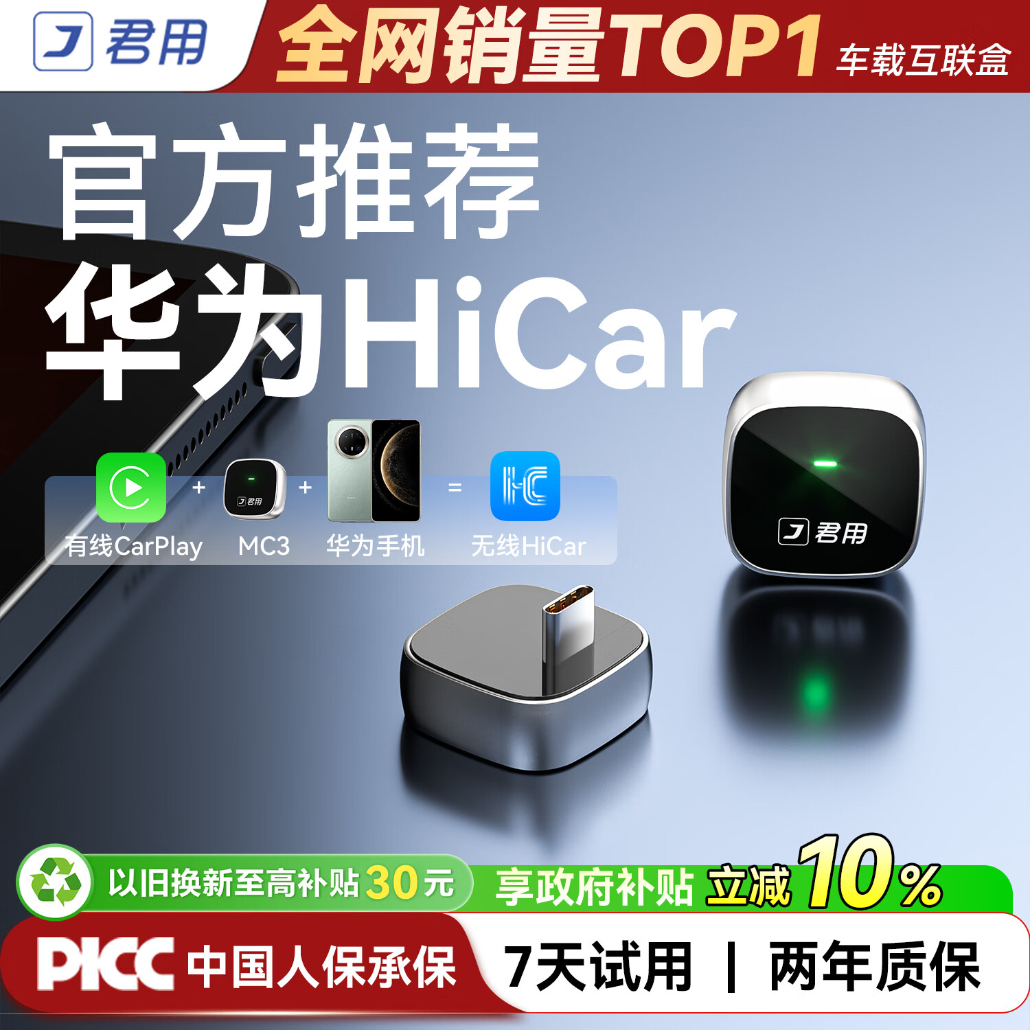 君用华为HiCar盒子适用奔驰大众奥迪CarPlay车机 MC3 Pro【Type-c款】