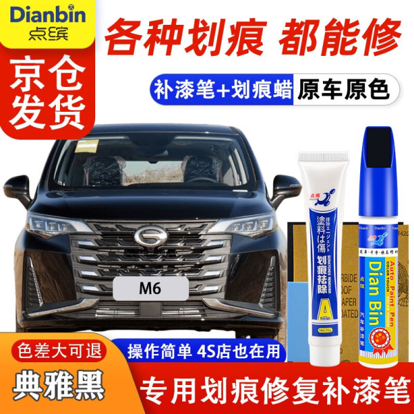 点缤广汽传祺M6补漆笔汽车漆面划痕修复蜡深度刮痕漏底修补自喷漆 典雅黑【补漆笔+划痕蜡】