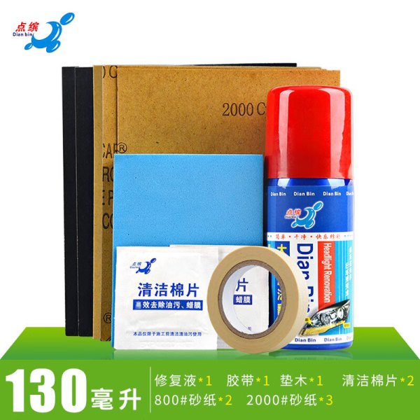 点缤 汽车大灯翻新修复液车灯老化灯罩发黄划痕修复工具刮痕修补剂 130ML大灯修复液套装