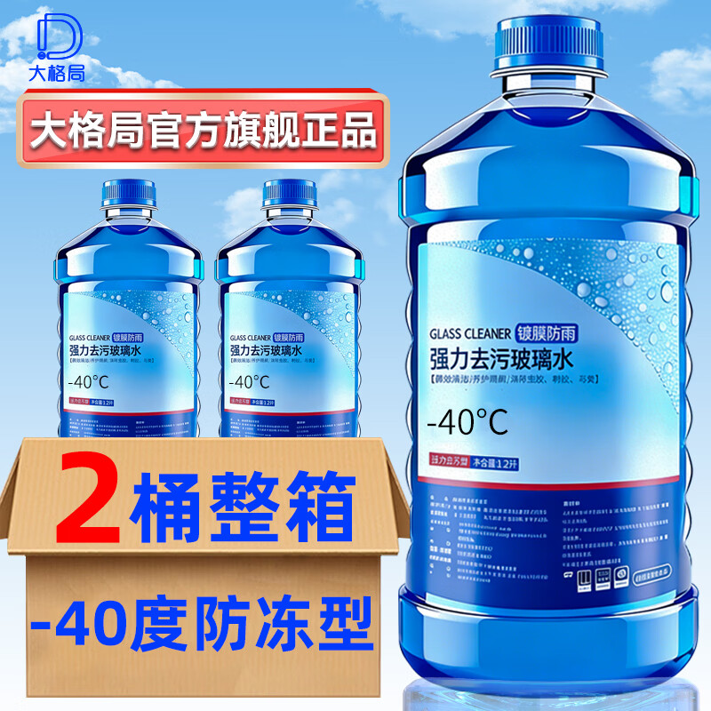 大格局汽车冬季玻璃水防冻强力去油膜车用雨刮水除虫胶四季通用 -40℃ 1.2L 2大瓶 防冻去污型