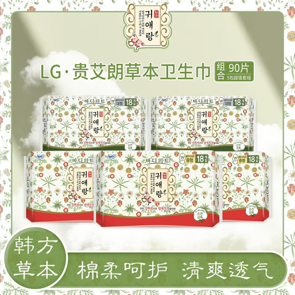 贵爱娘【官方店】贵爱娘卫生巾韩国原装进口LG艾草卫生巾加长日用 25cm日用18/包