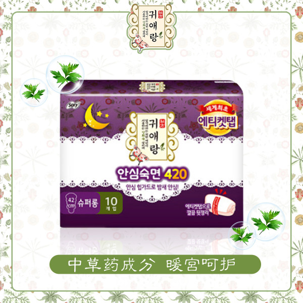 贵爱娘 贵艾朗LG韩国进口棉柔卫生巾 中草药呵护 瞬吸夜用42cm*10片/包