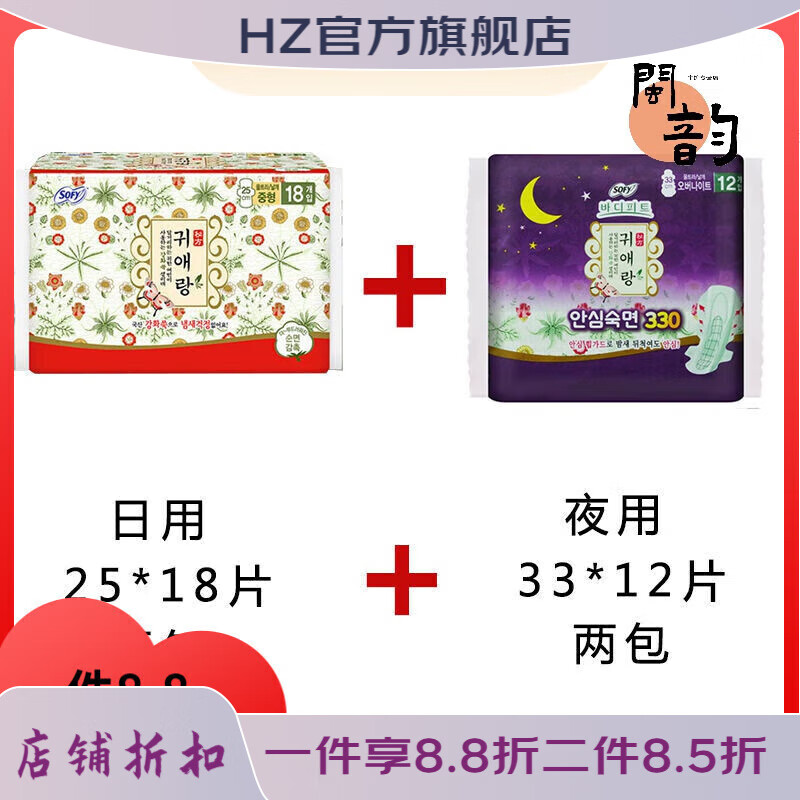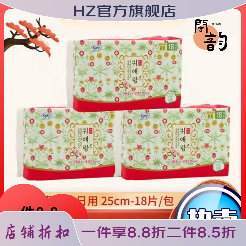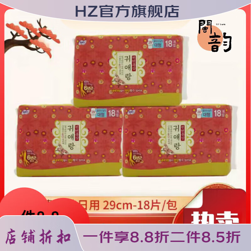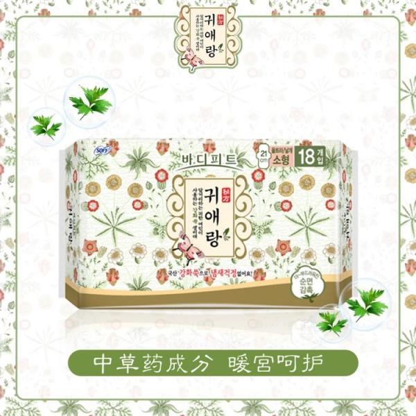 正品韩国LG旗下中草药缓痛经姨妈巾贵爱娘日用夜用29cm卫生巾