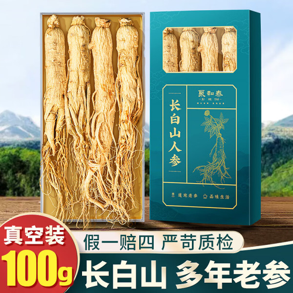 移动端、京东百亿补贴:聚和泰 吉林长白山大条人参 100g (12-14根) 滋补营养品