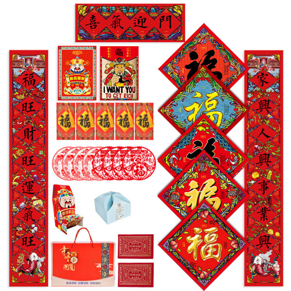 盛泉 2024龙年春节新年对联生肖画福字贴红包创意楹联门春联大礼包套装