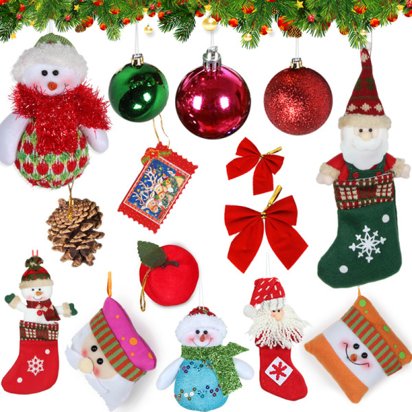 盛泉 圣诞节装饰用品道具圣诞老人毛绒小公仔礼物圣诞树挂件挂饰装扮