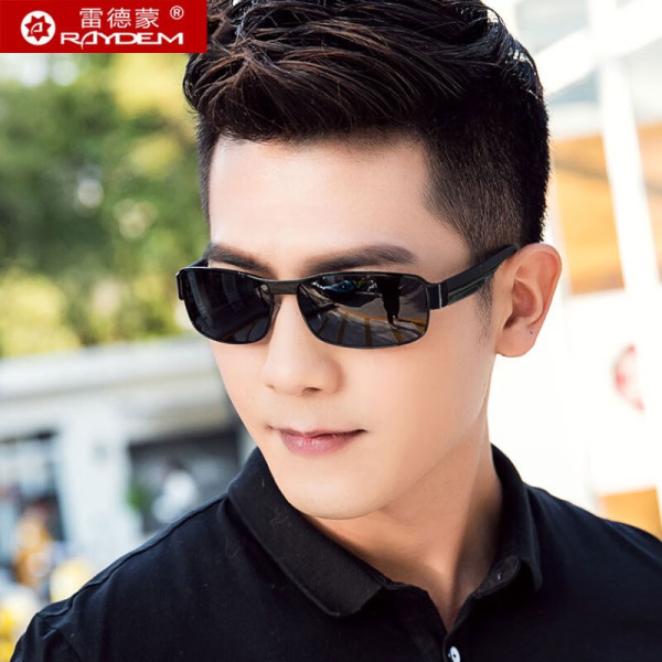雷德蒙 偏光太阳镜男款方形时尚墨镜防紫外线眼镜方框潮开车钓鱼专用驾驶镜 黑框 黑灰偏光片(礼盒包装)