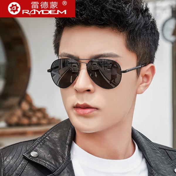 雷德蒙 变色偏光太阳镜男士司机夜视镜 黑色框 黑灰偏光片