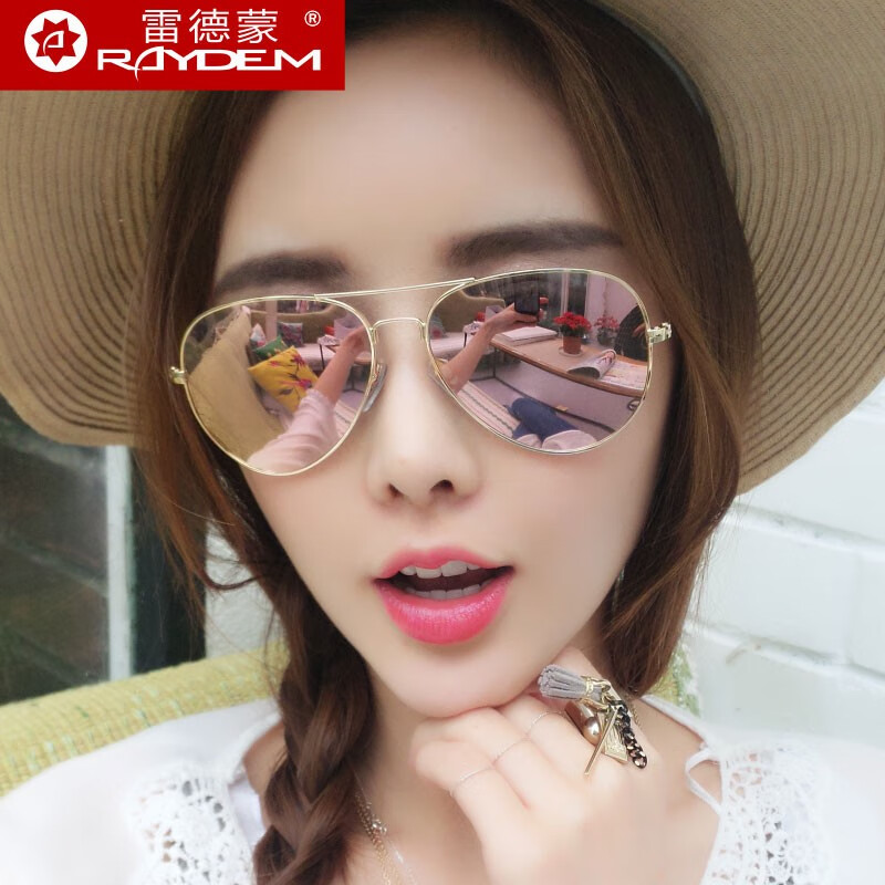 雷德蒙偏光太阳镜男士墨镜开车专用司机驾驶镜女潮日夜两用眼睛防晒眼镜 金框 樱花粉偏光片(高清TAC偏光)
