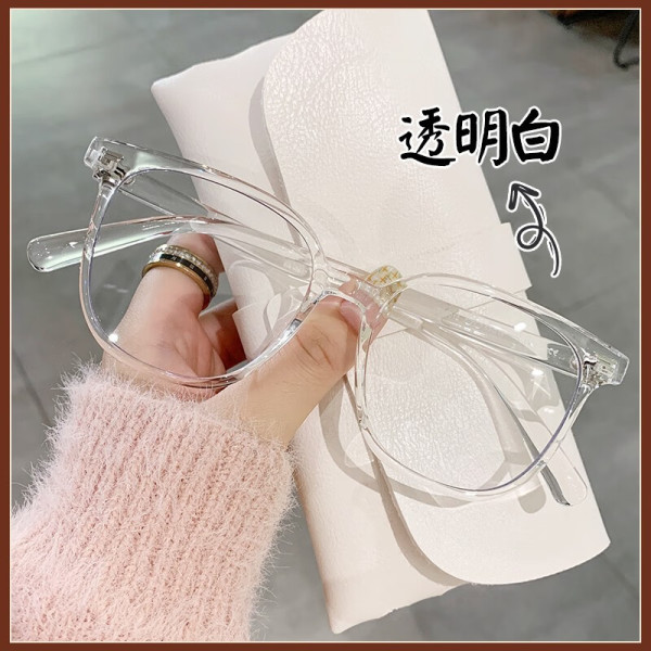 雷德蒙 黑框防辐射眼镜女抗蓝光疲劳近视镜男可配度数圆脸大脸素颜显瘦 透明白 平光防蓝光镜片0度