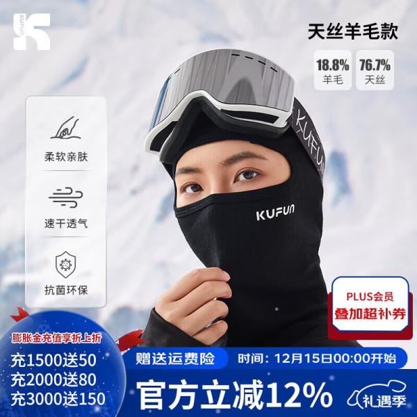 酷峰 Air 滑雪面罩护脸美利奴羊毛脸罩头套 秋冬防寒口罩