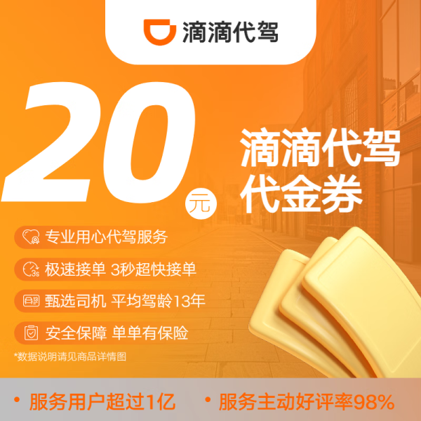 滴滴出行 滴滴代驾 20 元代金券/立减券