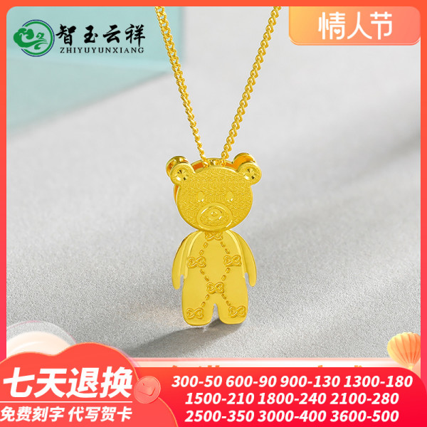 灵动小熊黄金吊坠女 999足金一体套链锁骨链潮流5G金饰闪闪灵动熊