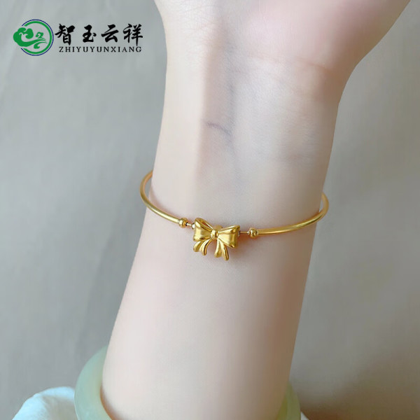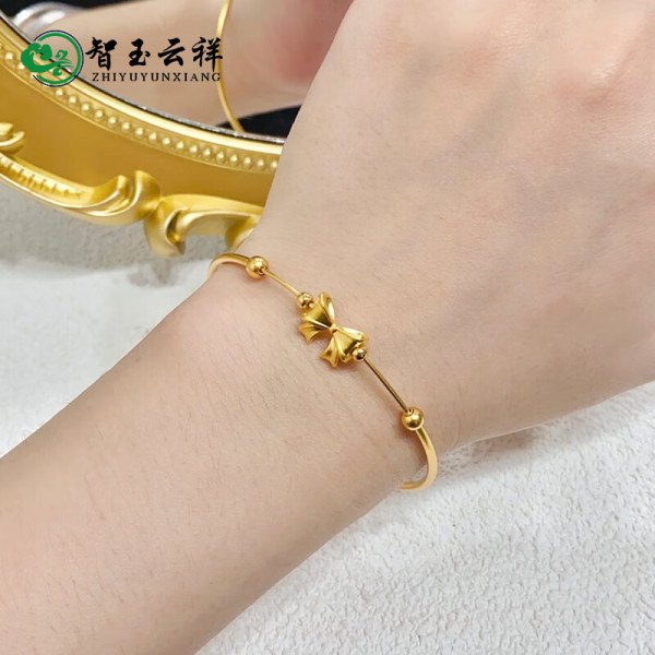 智玉云祥蝴蝶结黄金手镯女款 足金999在逃公主手链新款 情人节礼物送女友 蝴蝶结金约0.3g-0.5g S925手镯