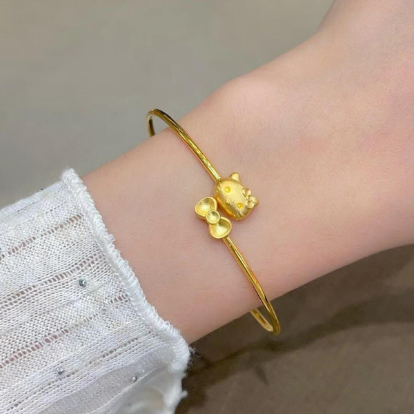 智玉云祥 999足金凯蒂猫黄金手镯女款 5G金猫咪蝴蝶结金镯子开口礼物送女友 金重约6.8g 克重多退少补
