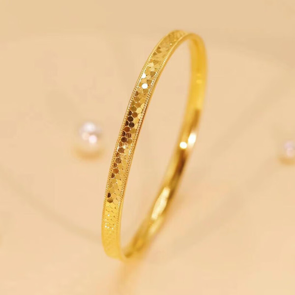 智玉云祥鱼鳞黄金手镯女新款 龙鳞金镯子手环手饰生日礼物送女友 52圈号 金约13g 克重多退少补