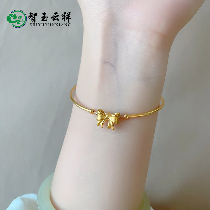 智玉云祥蝴蝶结黄金手镯女款 足金999在逃公主手链 足金蝴蝶结0.3g-0.5g + S925手镯