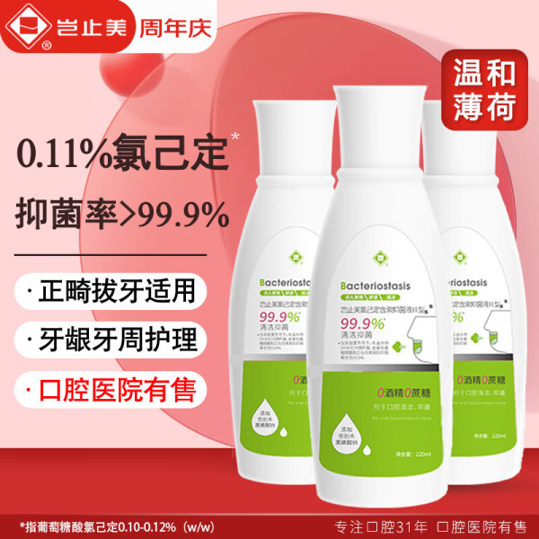 岂止美氯己定漱口水杀菌抑菌 正畸拔牙术后洗必泰含漱液成人牙周不适3瓶 【清洁杀菌】0.12%氯己定3瓶装