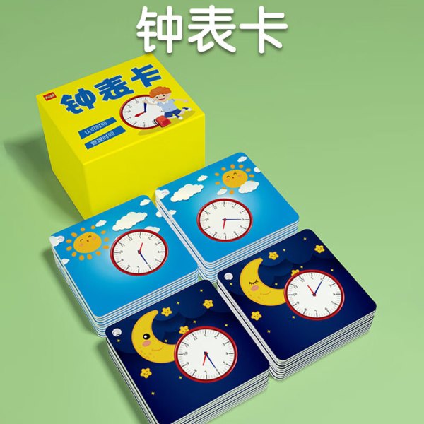 开心宝贝认识钟表卡片学习时间识钟启蒙儿童幼儿园认知早教卡片小学习 一盒全套175张