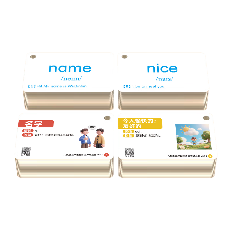 开心宝贝2026新版单词卡片人教版教材三年级英语pep小学生四英文上册下册 【人教版三年级起点】三年级上册107张
