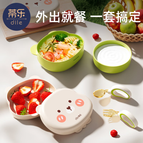 蒂乐宝宝外出辅食碗婴儿吃饭碗出门便携防摔儿童折叠餐具套装 晴空蓝+叉勺套装