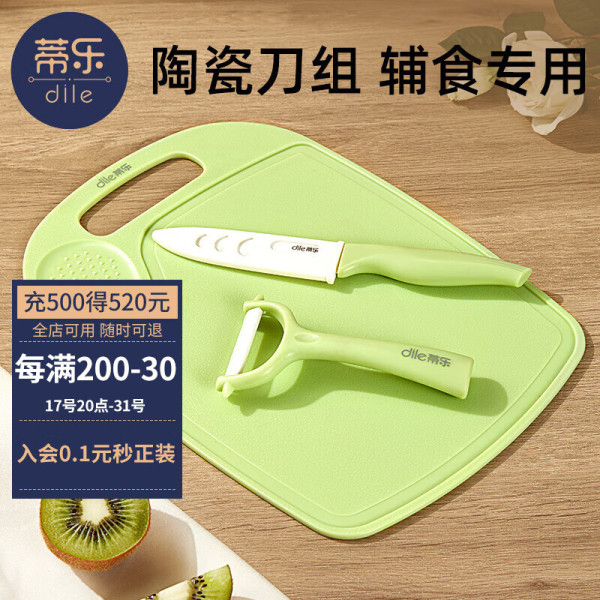 蒂乐婴儿辅食刀具宝宝工具全套菜板陶瓷剪刀套餐辅食三件套装 绿(3件)陶瓷刀+菜板配刨刀