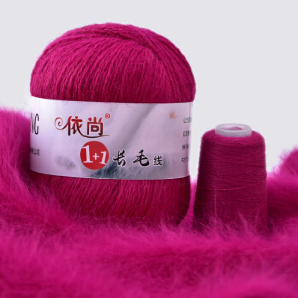 依尚 羊绒线 长毛毛线 14/2中粗线 手编机织均可 婴儿宝宝毛线 围巾线M06 深玫红