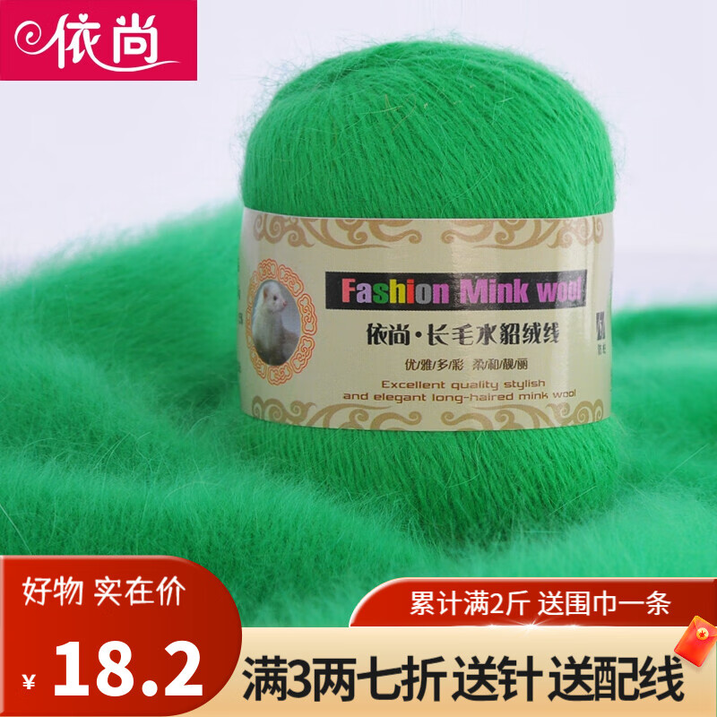 依尚长毛水貂绒毛线羊绒线围巾毛线团粗毛线编织婴儿用毛线球手编中粗 芥末绿