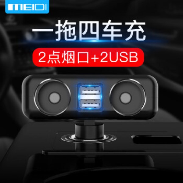 魅迪(MEIDI)6004 车载充电器一拖二汽车用点烟器一分二转换器双USB手机车充直插式黑色