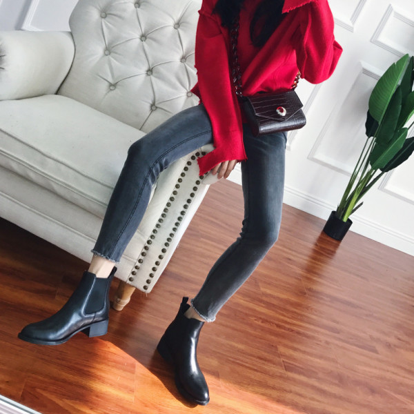 SILITHUS 缘分 头层牛皮平底切尔西短靴 黑皮面(皮内里) 34