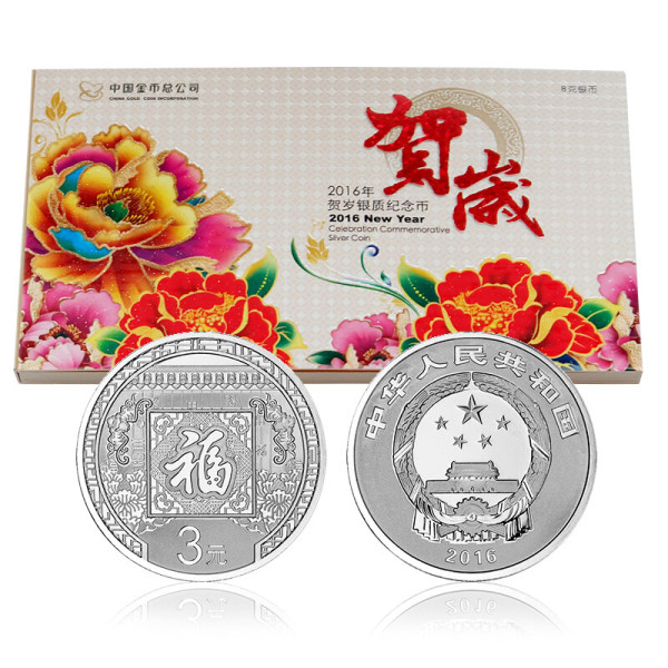 上海集藏 中国金币2016年贺岁银币福字币 单枚8克 卡币 带册
