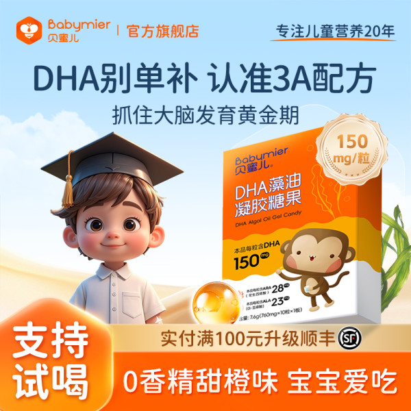 贝蜜儿 Babymier dha儿童藻油宝宝专用海藻油非鱼肝油送婴幼儿营养补充品