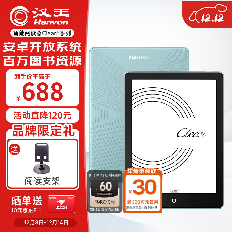 汉王(Hanvon)Clear6英寸电子书阅读器 墨水屏电纸书平板 智能阅读本电子纸 看书学习便携阅读 碧水青
