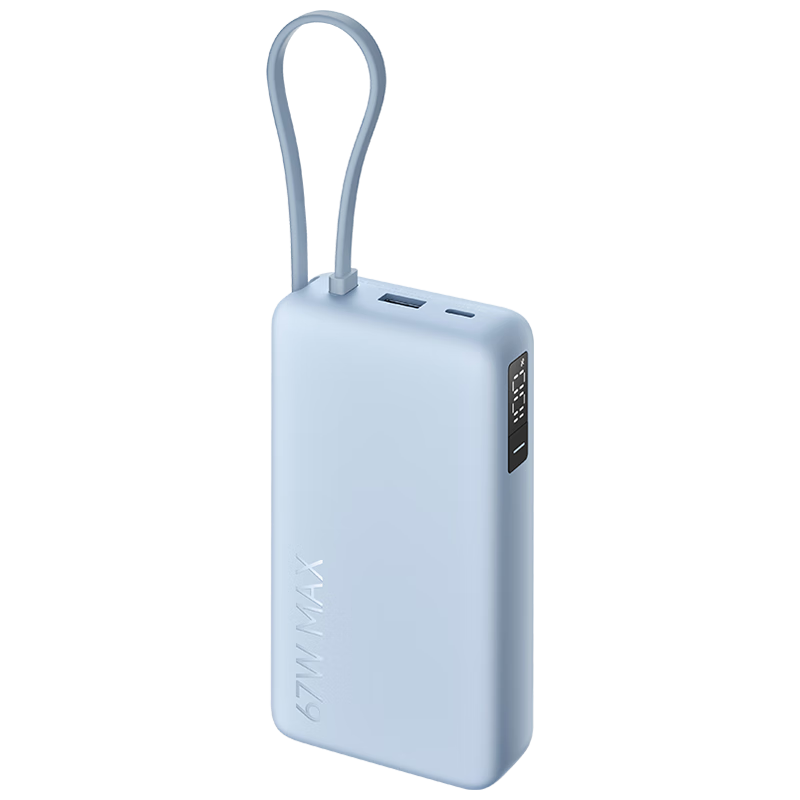 小米(MI)【3C认证】自带线充电宝20000 67W 浅蓝色可上飞机/火车 可充手机平板笔记本iPhone户外储能电源