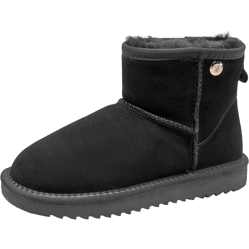 意尔康女靴雪地靴女士棉鞋冬季加绒加厚东北抗寒妈妈中筒短靴子 黑色 加绒 【靴筒羊毛内里】 35