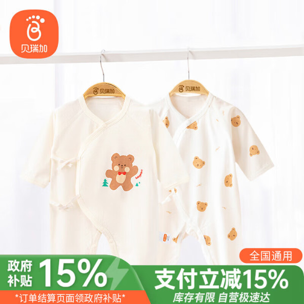 贝瑞加(Babyprints)新生儿连体衣2件装初生男女宝宝蝴蝶衣长袖纯棉护肚哈衣 小熊52