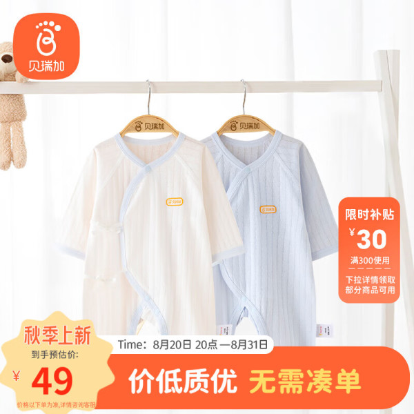 贝瑞加(Babyprints)婴儿连体衣2件装新生儿长袖爬服初生宝宝四季内衣纯棉衣服 蓝