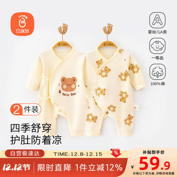 Babyprints 贝瑞加(Babyprints)婴儿连体衣2件装新生宝宝纯棉A类衣服四季柔软内衣爬服 黄熊59