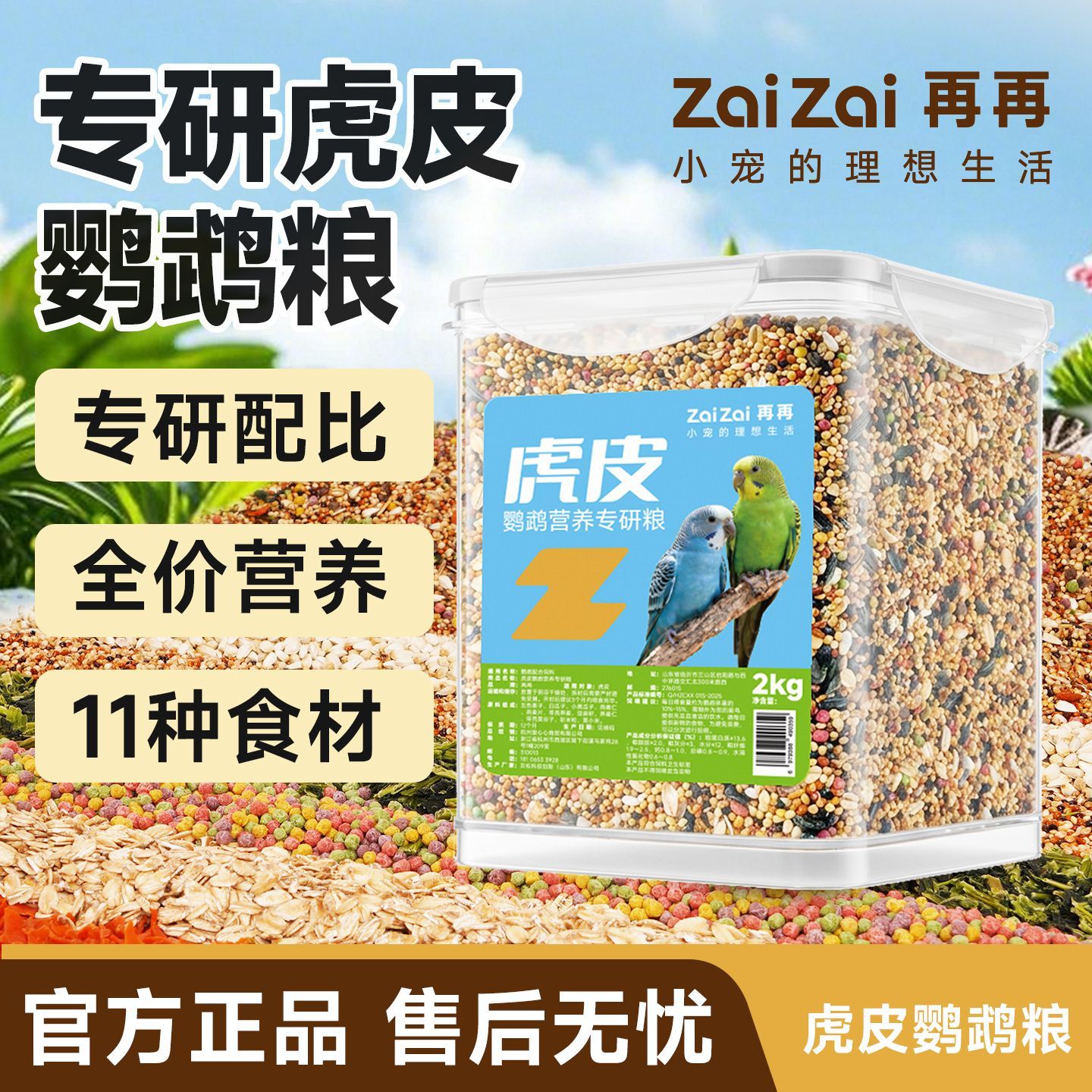 再再虎皮鹦鹉鸟粮超大桶饲料虎皮玄凤牡丹专用鸟食谷带壳混合粮Z