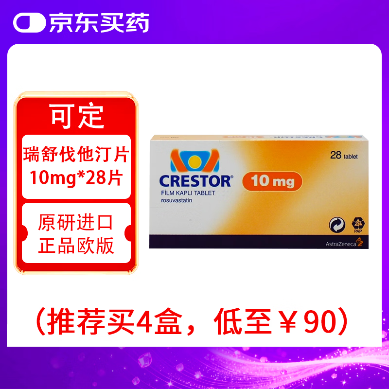 可定 瑞舒伐他汀钙片 10mg*28片/盒Crestor原研进口药 1盒装