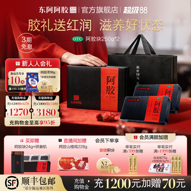 东阿阿胶阿胶块250g*2礼盒装补血滋阴止血官方正品送礼佳品38礼物