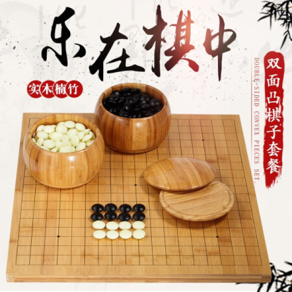 云子围棋B型单面凸新云子 楠竹棋盘棋罐围棋套装 赠象棋 开学礼物