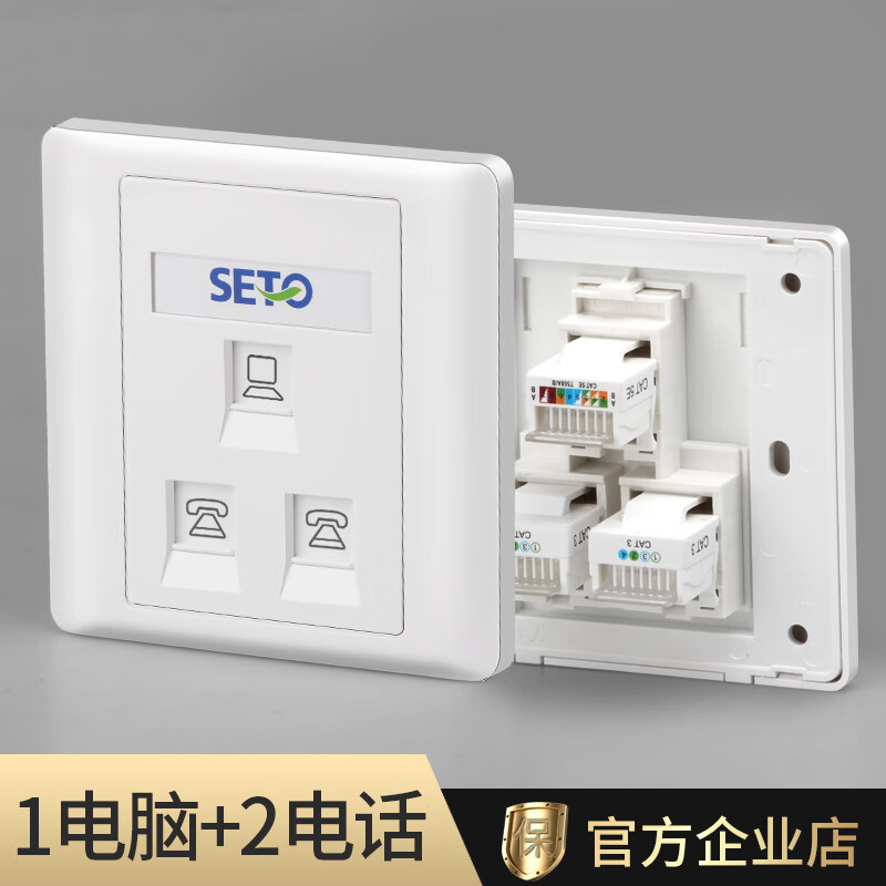 SETO 网络网口网线插座面板单双口86型超五类电话电脑插座 1电脑 2电话