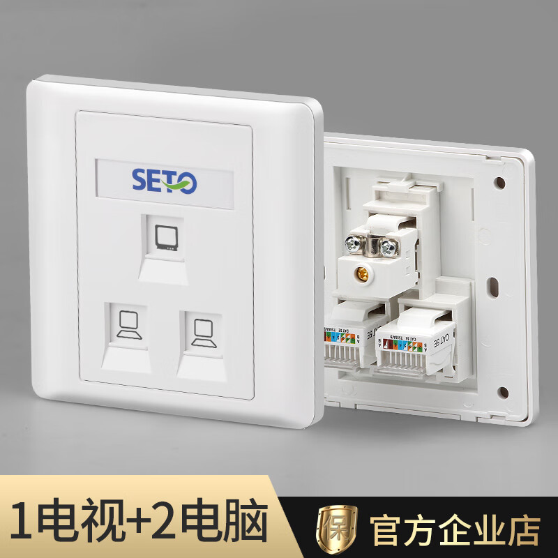 SETO 网络网口网线插座面板单双口86型超五类电话电脑插座 1电视 2电脑