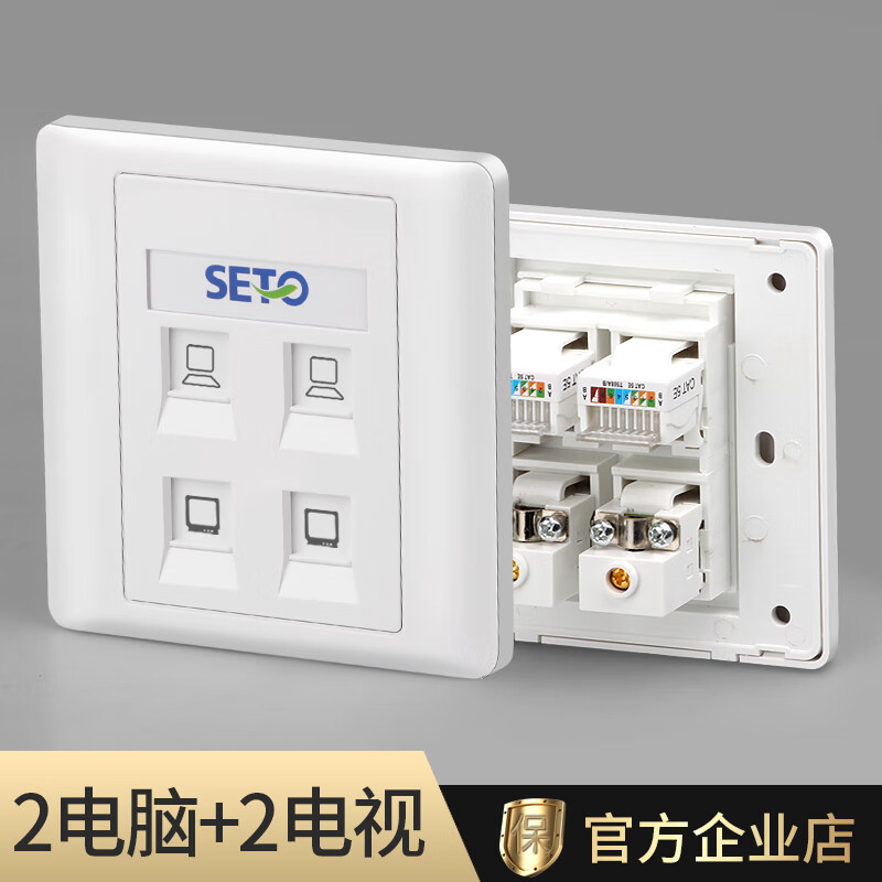 SETO 网络网口网线插座面板单双口86型超五类电话电脑插座 2电脑 2电视